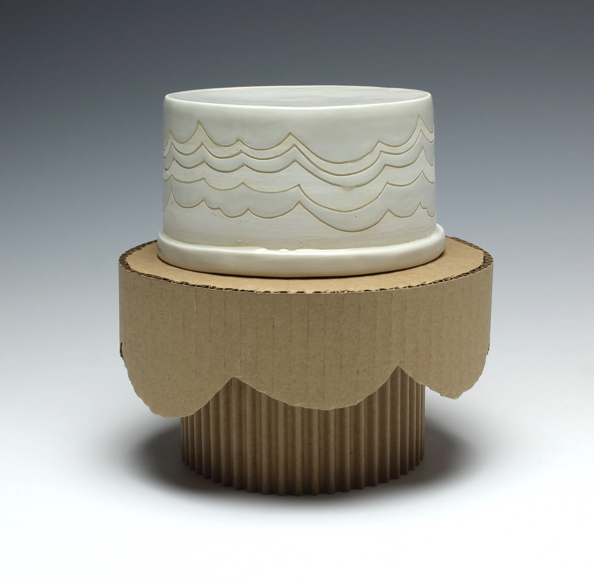 When making this series of monotypes I kept thinking about the print process in layers. My deliberately messy process led to a shadow-box solution. After matting the monotype, a porcelain cloud was either hung by thread or pinned into the print. The deep, open frame adds to the stage-like and theatrical feel that I see when looking into the clouds.